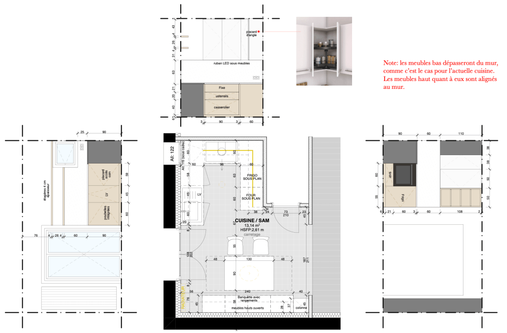 Dans la banlieue proche de Toulouse, une jolie maison de ville avait besoin d’une nouvelle cuisine. Une cuisine plus adaptée, plus moderne et en adéquation avec notre mode de vie actuel. Tout en conservant des éléments de l’ancien, l’objectif était de proposer un aménagement cuisine / salle à manger pratique en s’adaptant à la taille de l’espace. En effet, pas de gros travaux de restructuration étaient envisagés. Des propositions mélangeant en harmonie mobilier et matériaux vintage avec la finesse et modularité du contemporain ont su convaincre les propriétaires.